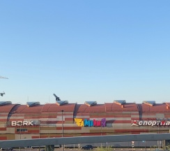 Здание привлекает посетителей своим ярким красно-оранжевым фасадом и необычной биоморфной формой. Построен в 2004-2005 гг.