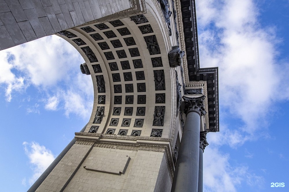 Триумфальная арка на площади Победы (Кутузовский проспект) была построена в 1966–1968 гг. и явилась точной копией Триумфальных ворот, которые были сооружены в Москве в 1829–1834 гг. по проекту архитектора О. Бове.