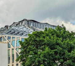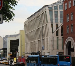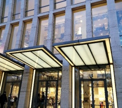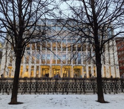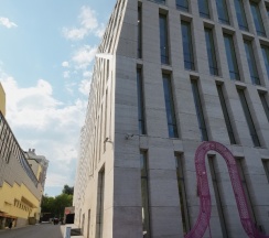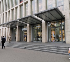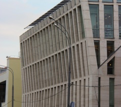 Здание было построено на месте исторического цветочного рынка. За счёт того, что часть несущей конструкции здания была выведена на фасад, удалось добиться освещения всех этажей естественным светом.