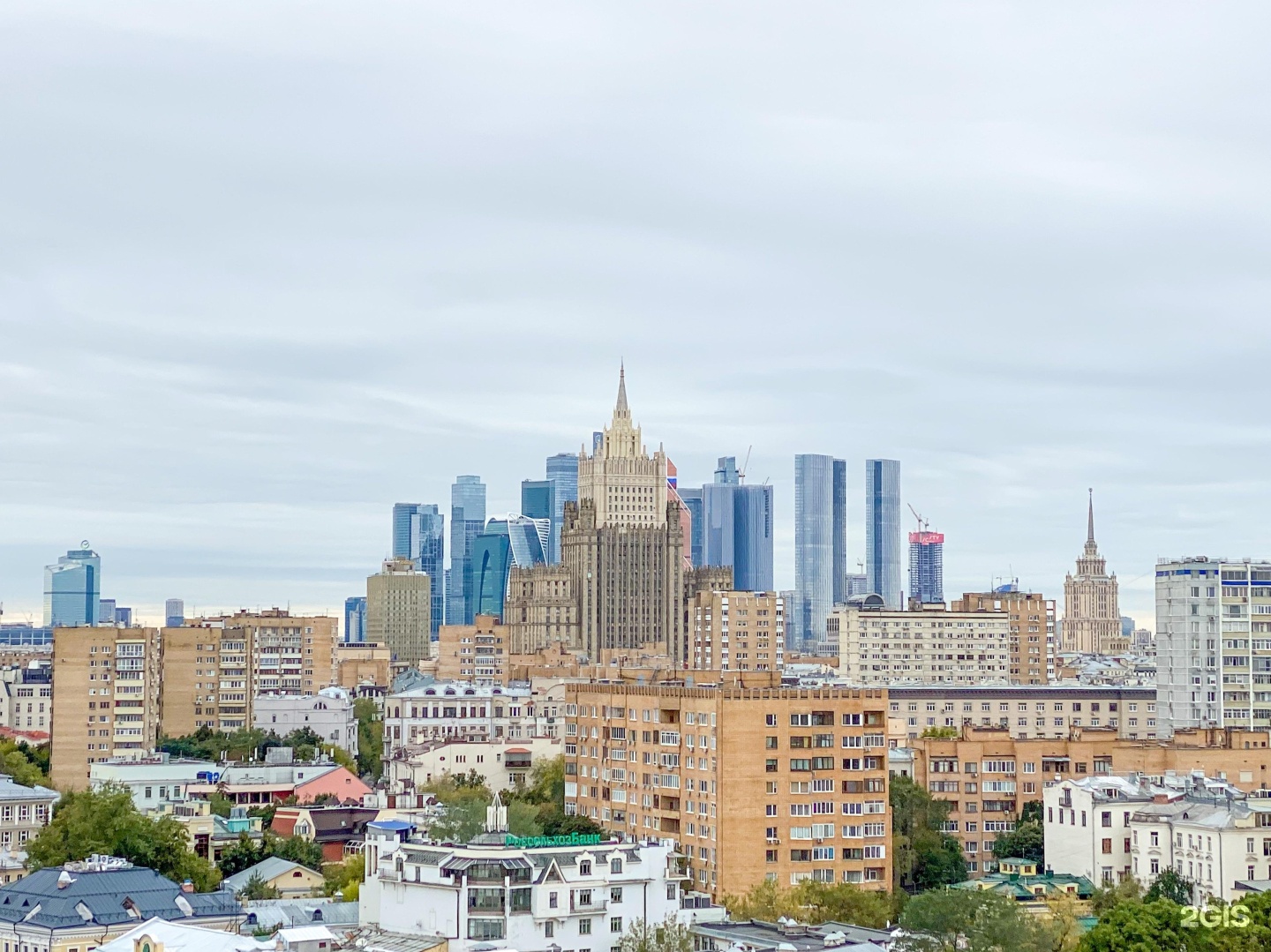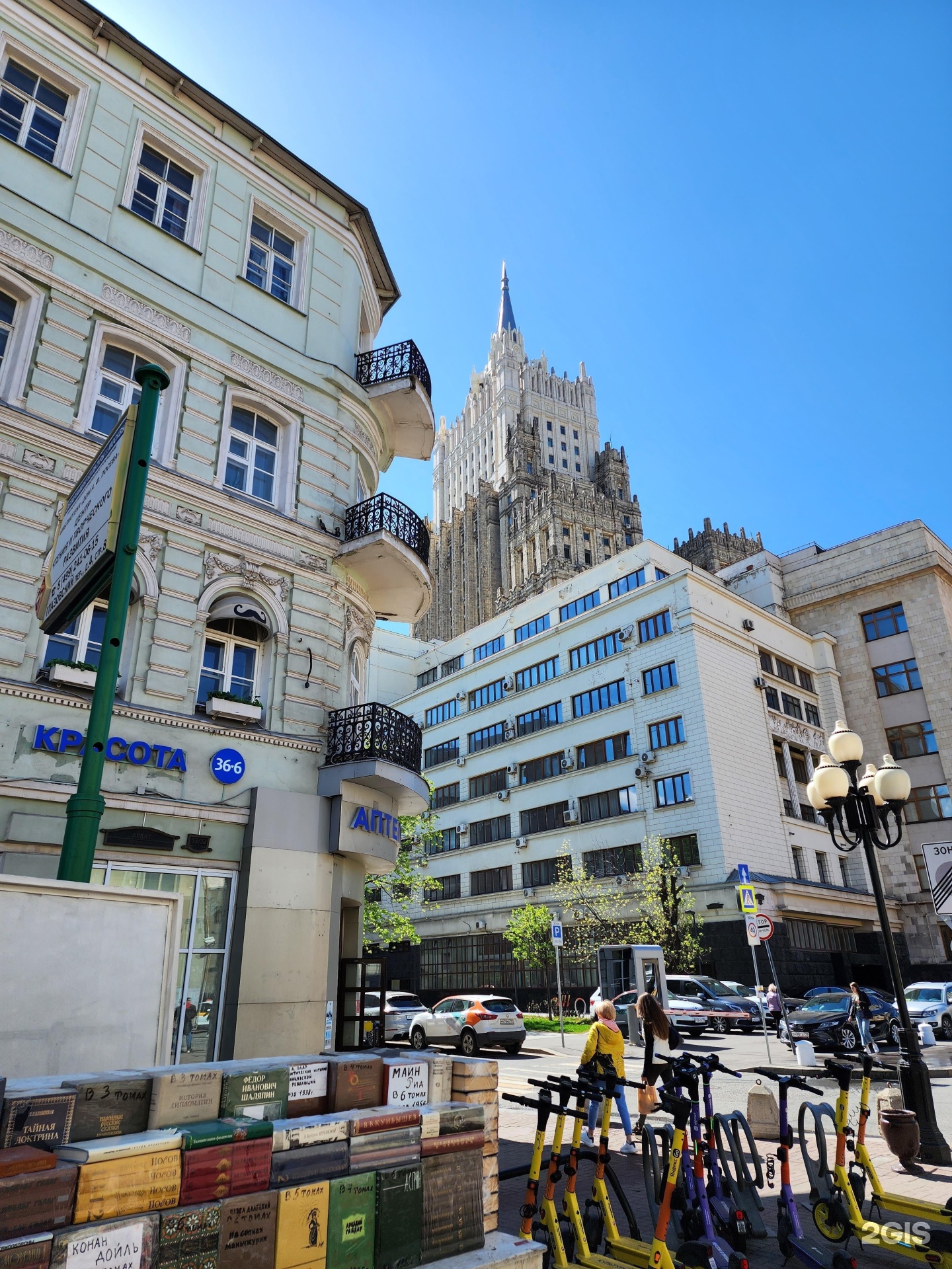 Здание Министерства иностранных дел, одно из семи высотных зданий начала 1950-х годов. Авторы проекта здания МИДа — архитекторы Михаил Адольфович Минкус и Владимир Георгиевич Гельфрейх. Первые эскизы планировки Смоленской площади для нового здания были созданы в 1946 году. В январе 1947 года появилось постановление о строительстве в Москве высотных зданий, и работа началась. Рассматривалось несколько вариантов проекта разной этажности. От правого, южного крыла здания должен был начинаться новый проспект Смоленская площадь – Дворец Советов шириной 42 метра. Его предполагали пробить прямо через переулки и кварталы между Пречистенкой и Сивцевым Вражком. Арбат должен был превратиться в большую улицу шириной 33 метра.