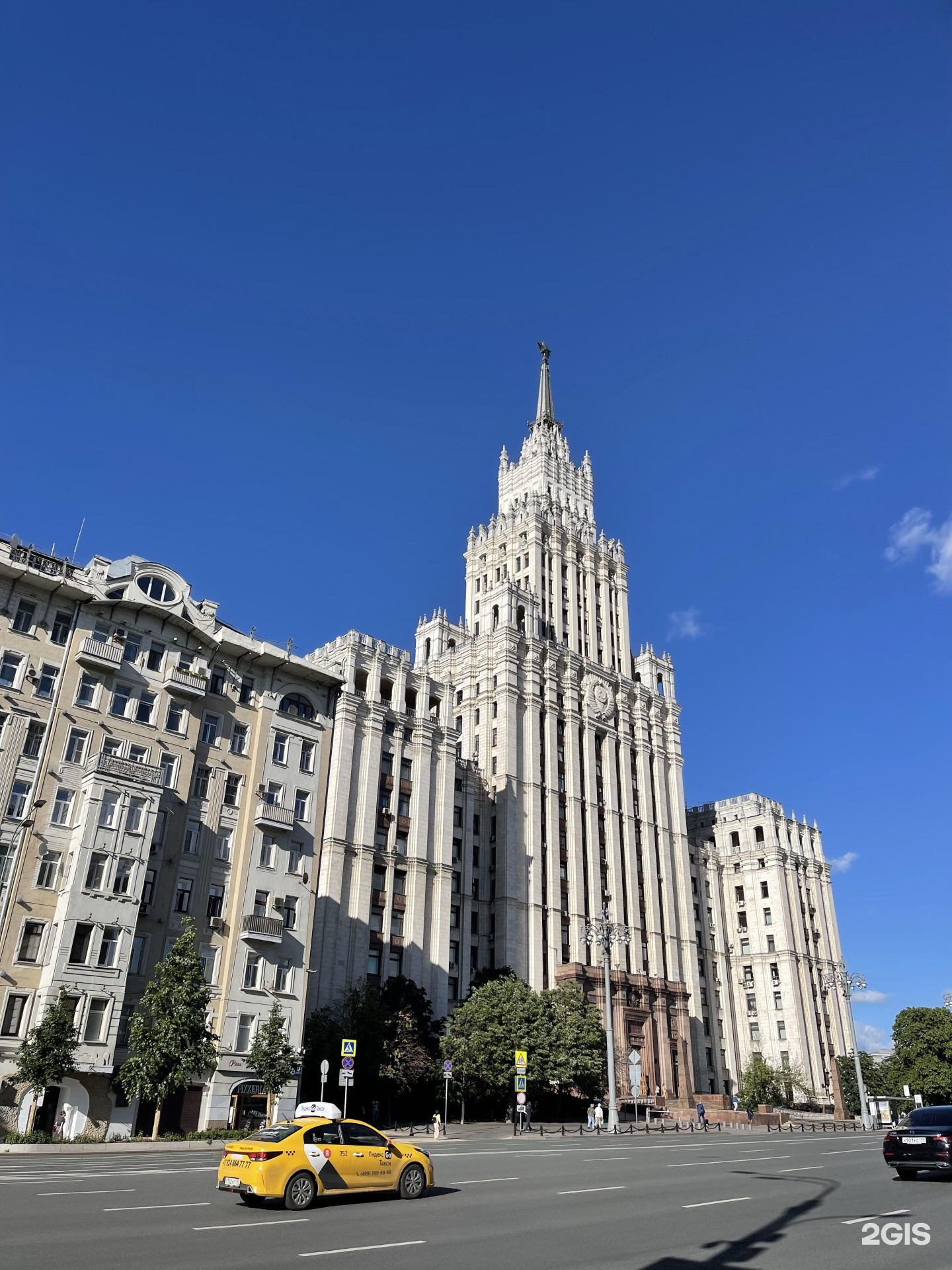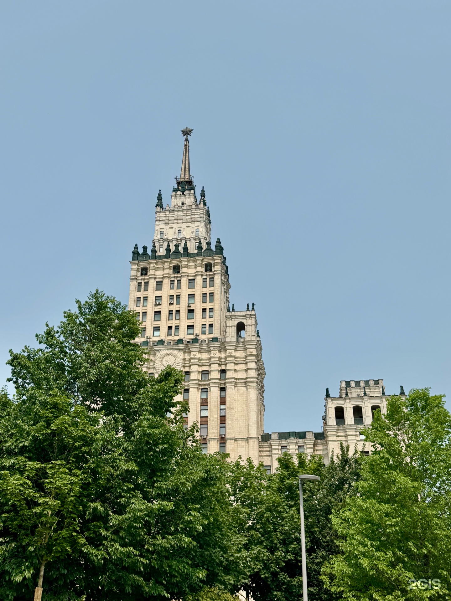 Эту высотку строили под наклоном в 16 градусов! Это сделали специально, чтобы при выравнивании грунта после прокладки метро, она заняла вертикальное положение. Расчеты оказались точными! Теперь здание стоит ровно. В подвале сохранилась бомбоубежище.