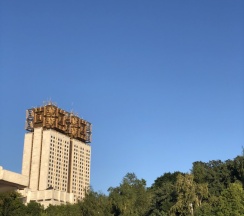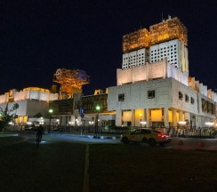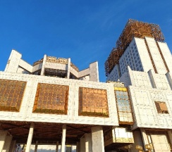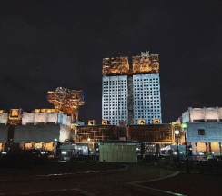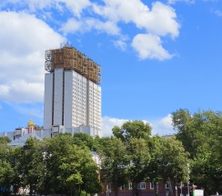 Постройка комплекса стала зримым и символичным закатом позднесоветских вложений государства в науку, решение о возведении было принято в 1966 г., сама стройка началась только в 1974. Здание строилось более двадцати лет, офисная часть была сдана в эксплуатацию в 1990 г., а большой концертный зал был готов только в 1997 г.
