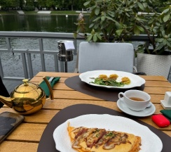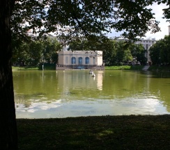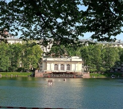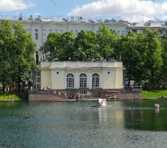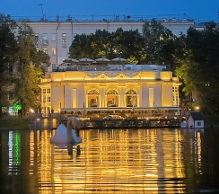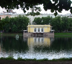Деревянный павильон был построен Давидом Хазановым по заказу Трамвайтреста. В нём должны были располагаться комнаты отдыха для вагоновожатых, а также помещения для лодочной станции и раздевалки на зимнее время, когда на пруду организовывался каток.