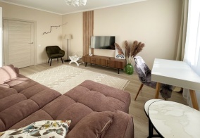 Отдыхала в этих чудесных апартаментах 2 ночи в июне 2025 года. Впечатления только положительные: красивое оформление в стиле прованс с оттенками розового; полноценная кухня со всем необходимым, стиральная и посудомоечная машинки, вся необходимая бытовая химия, полотенца и губки. Душ-туалет удобные, чистые и красивые. Вообще чистота радует. Кровать для меня оказалась очень удобной, просто отлично! Я получила чёткие инструкции по заселению и постоянную поддержку по воцап в течении всего проживания. Спасибо за это, было очень приятно, чувствовала себя желанным гостем! ❤️ Идеальное место для отдыха)
