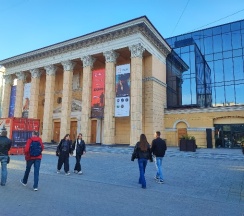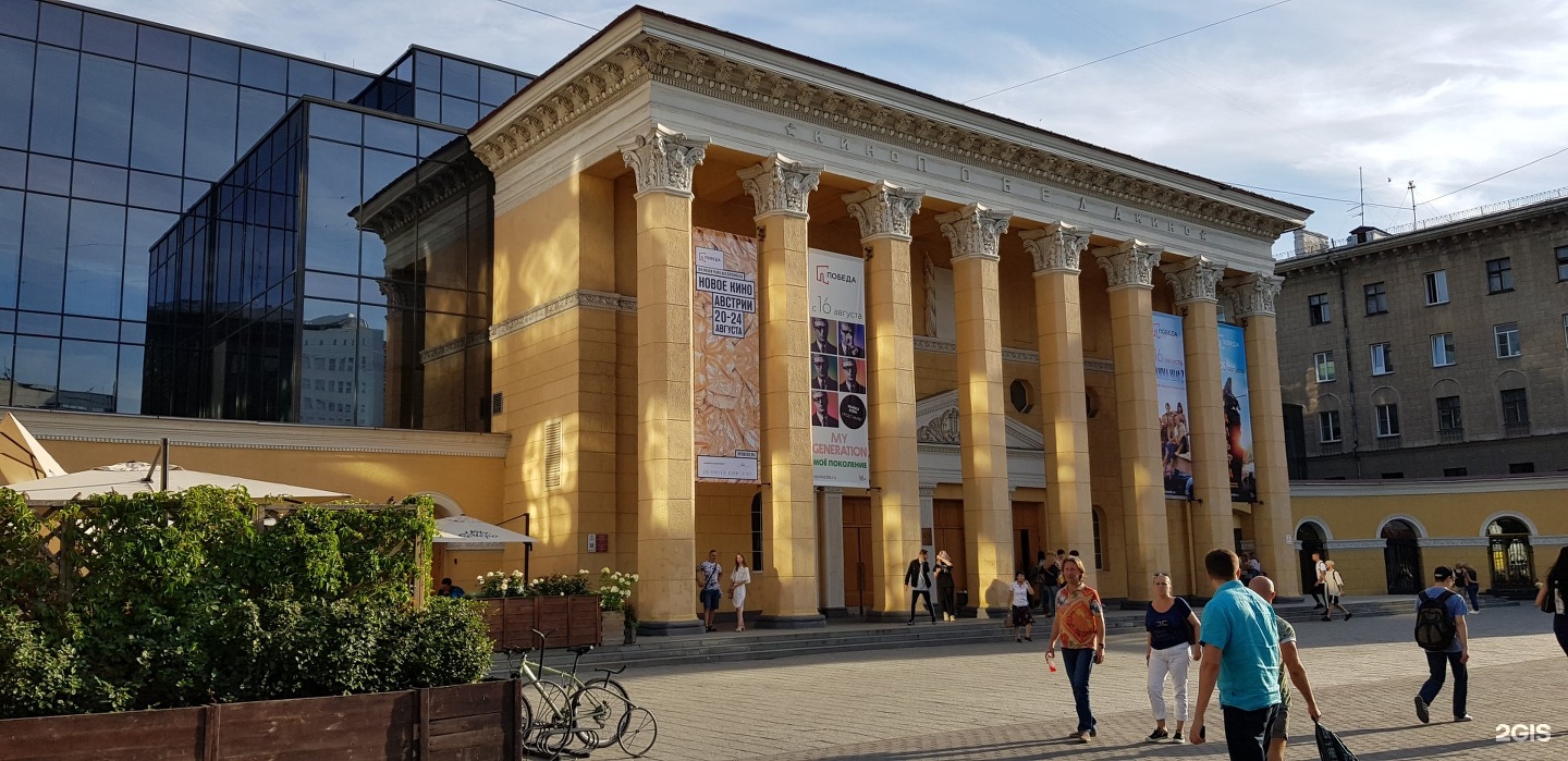 Старейший из кинотеатров, сохранившихся в городе, сейчас — главная фестивальная и премьерная площадка Новосибирска. Изначально кинотеатр был построен в стиле революционного романтизма, назывался «Пролеткино» и вместе с соседним зданием (сейчас — СГУВТ) составлял единый комплекс — Дворец труда. В 1930-х гг. кинотеатр был перестроен в стиле неоклассицизма. В войну здание превратили в фабрику патронов. После войны кинотеатр снова реконструировали, оформив фасад неоклассическим восьмиколонным портиком и двумя полуциркульными аркадами, Тогда же появилось название «Победа». В 1990-х гг. кинотеатр пришёл в упадок. А в 2006 г. — открылся после очередной реконструкции. Теперь это многозальный кинотеатр с кофейней, рестораном, ночным клубом, концертной площадкой, галереей и так далее.