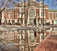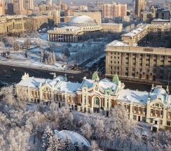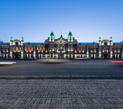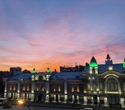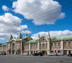 Здание Городского торгового корпуса построено Андреем Крячковым — ключевым архитектором для Новосибирска первой трети ХХ века. Архитектурный стиль — эклектика с элементами рационалистического модерна.