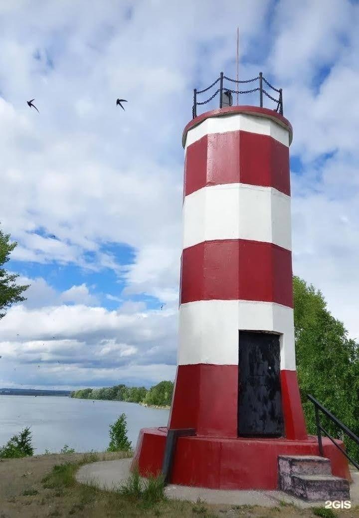 Навигационный, действующий маяк установлен на "стрелке", разделяющей Обь и протоку Большую. Относится к инфраструктуре находящегося выше по течению шлюза. Является популярным местом для проведения пикников и создания атмосферных снимков.