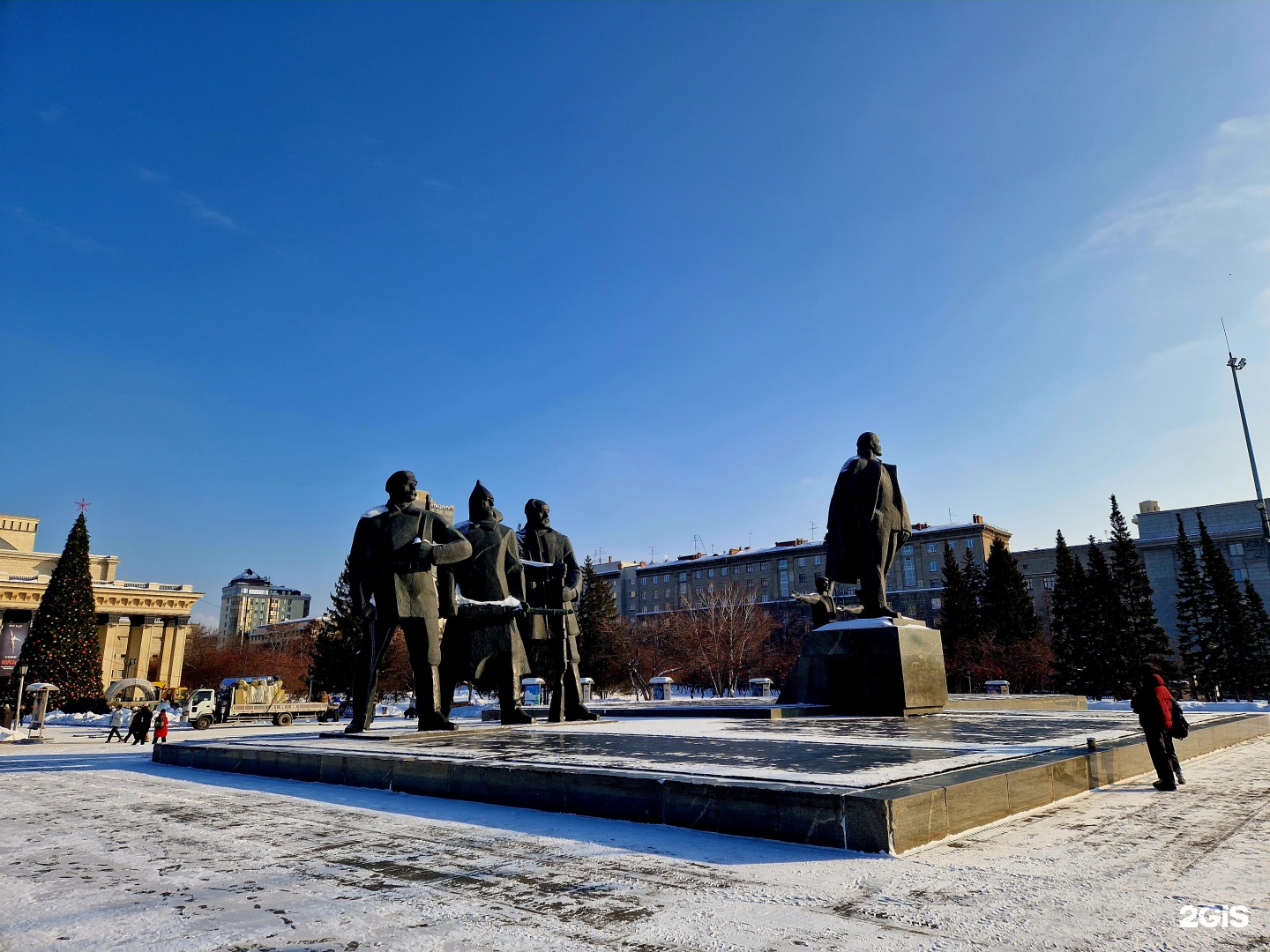 Памятник открыт в год 100-летия со дня рождения В.И. Ленина. Он является центральной фигурой монументальной многофигурной композиции, развернутой вдоль восточной стороны площади. Справа от памятника В.И. Ленину три фигуры – рабочий, солдат и крестьянин – символизируют движущие силы революции. Слева – фигуры юноши с факелом и девушки, несущей колосья, отражают преемственность поколений. Высота 6.5 м.