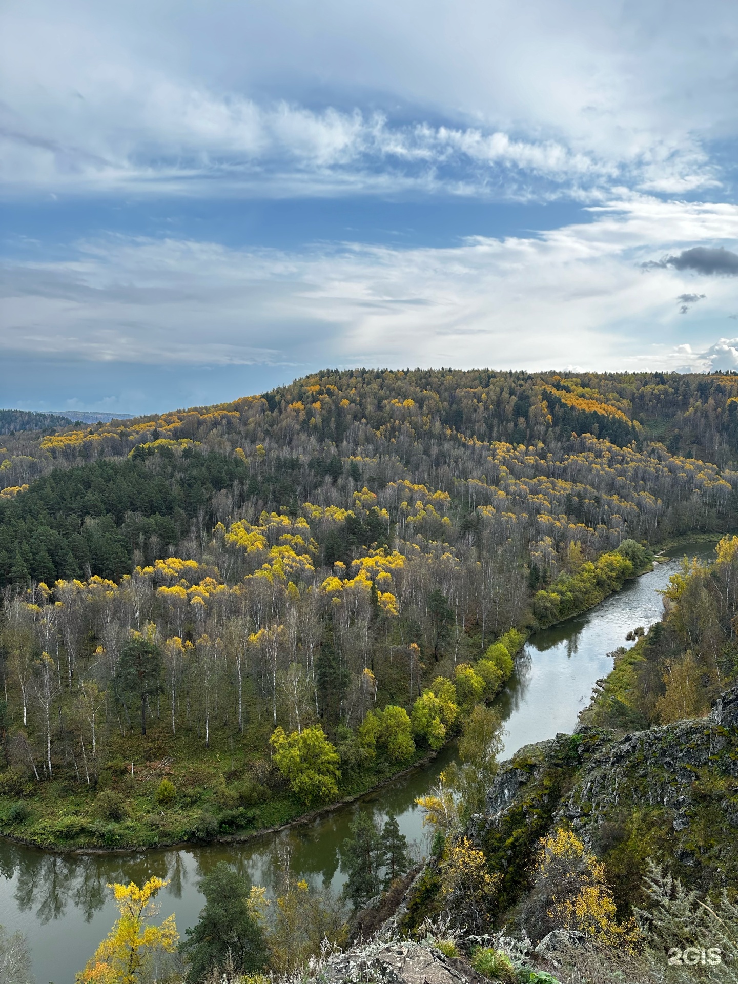Живописный каменный обрыв, выделяющийся среди окружающего ландшафта. Скала представляет собой уникальную геологическую форму рельефа с характерными выступами и трещинами, образованными под воздействием природных процессов эрозии и выветривания. Местность вокруг скалы богата флорой и фауной, типичной для данного региона, включая разнообразные виды растений и животных.