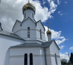 Формирование общины началось в 1992 году, в 1996 году был освящён закладной камень, а к 2000 году установлены купола и колокола. Храм входит в состав епархиального мужского монастыря во имя святого Иоанна Предтечи, основанного в 2007 году. Архистратиг Михаил почитается как небесный покровитель верующих и предводитель воинства ангельского.
