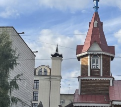 Однопрестольная деревянная церковь на пересечении улиц Болдыревская и Гондатти (ныне Октябрьская и Урицкого) задумывалась как церковь-школа в комплексе с церковно-приходской школой. В 1906 г. на средства местных купцов братьев Маштаковых была достроена трапезная, притвор с колокольней и крытые сени. Деревянная церковь чудом уцелела после разрушительного пожара 1909 г. в Новониколаевске. В 1939 г. церковь была закрыта, колокольня и восточная башня разобраны, а здание использовалось для размещения различных организаций. В настоящее время здание церкви воссоздано в своем первоначальном виде. Здание представляет историко-культурную ценность, являясь единственным сохранившимся в г. Новосибирске памятником культового деревянного зодчества начала ХХ в. (Информация предоставлена Научно-производственным центром по сохранению историко-культурного наследия Новосибирской области)