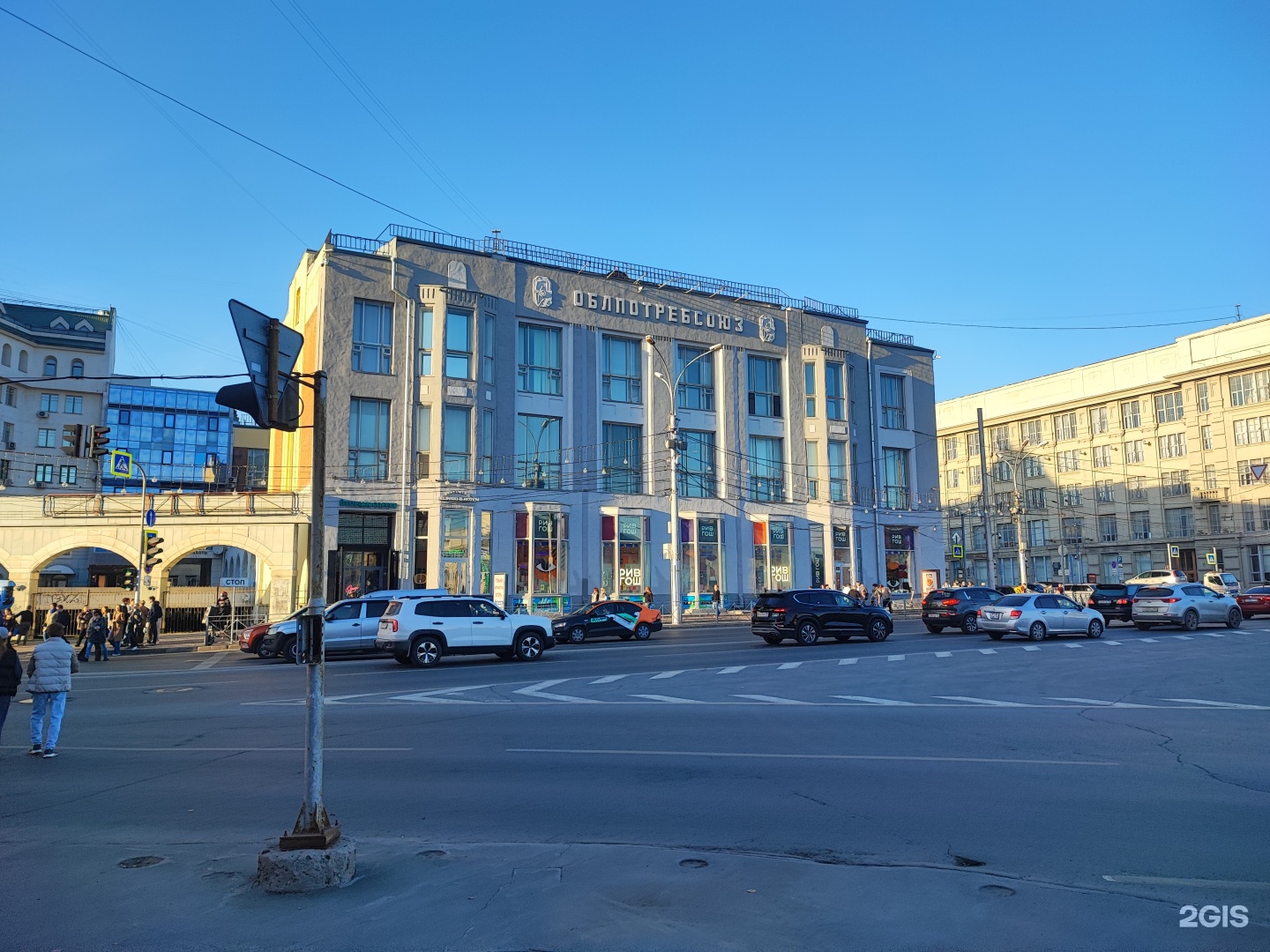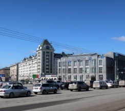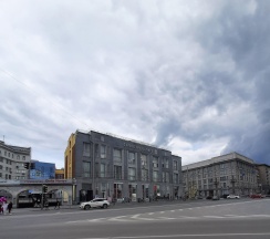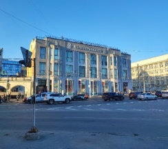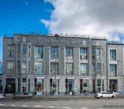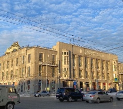 Построенное как административно-торговый корпус Сибирского краевого союза кооператоров, здание является одним из крупнейших сооружений периода становления Новосибирска в качестве административного центра Сибирского края (1925-1937 гг.). Оно возведено по проекту известного сибирского зодчего Андрея Дмитриевича Крячкова под техническим руководством инженера Кочнева и представляет яркий образец архитектуры переходной стилистики от неоклассицизма и рационалистического модерна к конструктивизму. (Информация предоставлена Научно-производственным центром по сохранению историко-культурного наследия Новосибирской области) Построено в 1926 г.