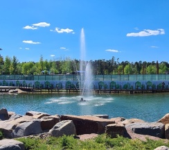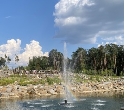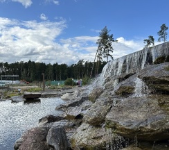 Парк находиться далеко, если ехать на общественном транспорте. Я из другого города, но хотелось посетить парк , с Ярославского вокзала 1.5 часа добираться. Единственное что красивое в парке - это водопад, сделано красиво, растительность, дорожки и даже скамейки прям у водопада. И еще интересный арт - объект «античная голова». В остальном парк неухоженный, водоемы грязные. (Есть с чем сравнить). Народу очень много, смотреть по факту не чего. Есть 2 кафе, мы были в кафе спортсмены, меню дорогое. Например суп за 790, паста 1290 (по- моему), меню у них на сайте есть. Я взяла круассан с красной рыбкой и сливочным сыром за 750 рублей. Очень вкусный.