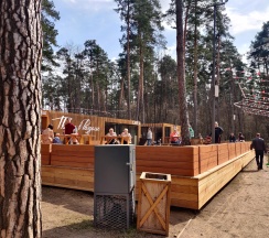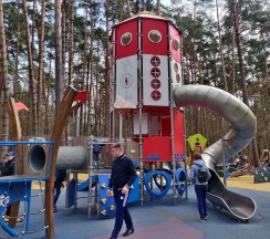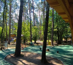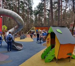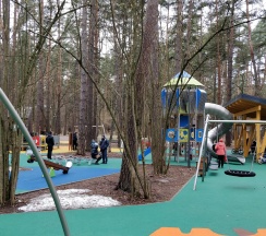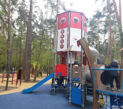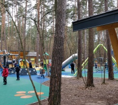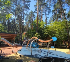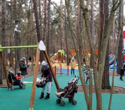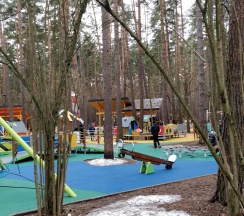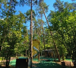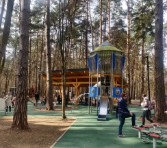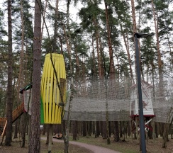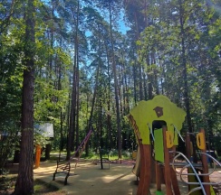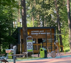Тренажеры, детские площадки, кафе, веревочный парк.