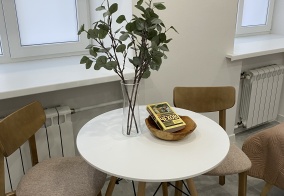 Номер в цокольный этаже, не хватало стульев. В номере только кровать, которая очень высокая и забирается и спускаться с неё весьма проблематично