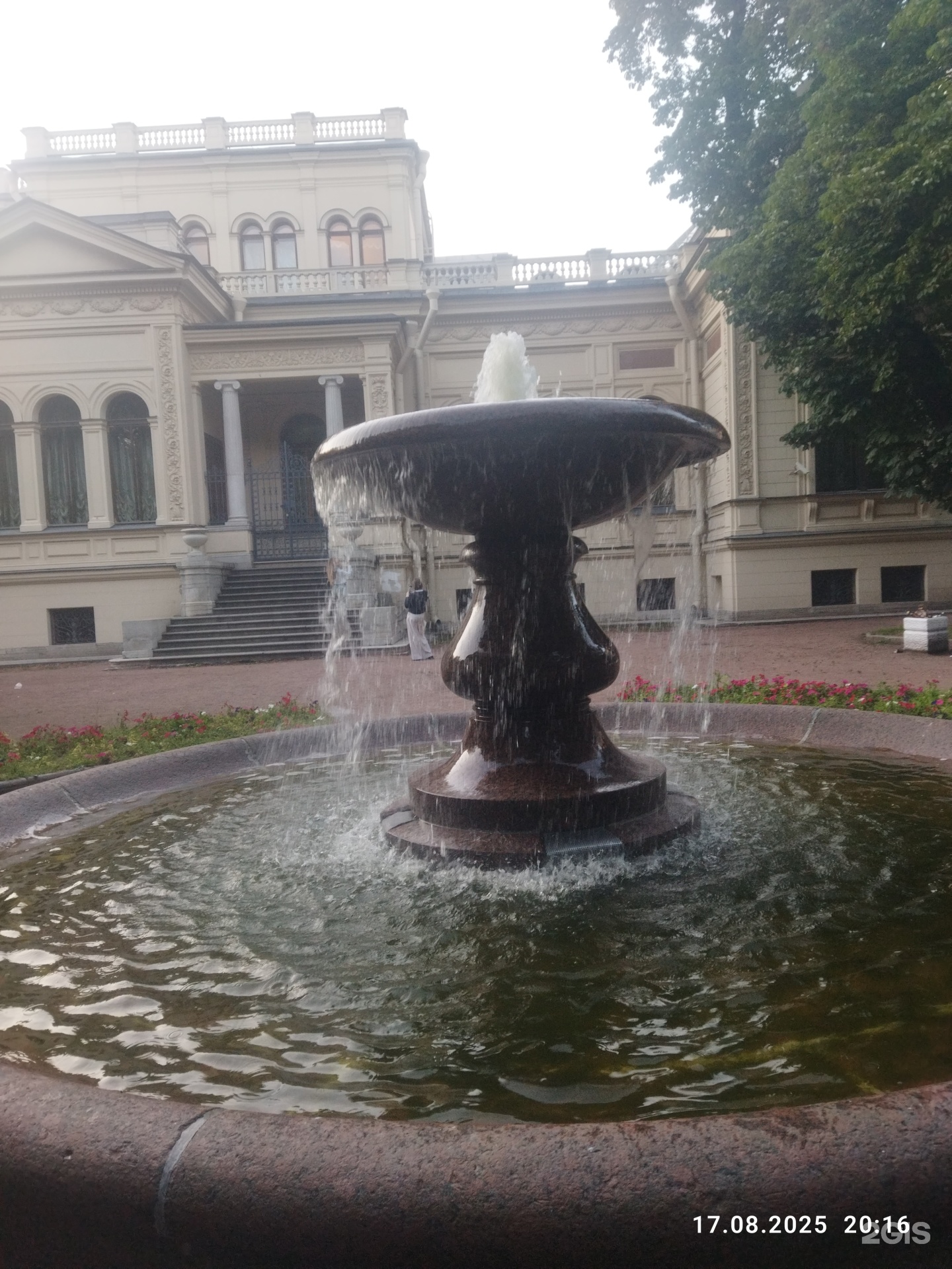 Сад был разбит по проекту М. Е. Месхамера — создателя самого Алексеевского дворца. Максимилиан Егорович ставил своей задачей достичь слияния дворца с пейзажем сада — и это ему в полной мере удалось: дворец с его небольшой высотой, многочисленными широкими окнами и открытой террасой как бы плавно перетекал в сад. Современники архитектора были поражены — планировка сада разительно отличалась от принятой в то время. Помимо причудливого сплетения дорожек и фонтана, сад был дополнен водным партером, который, к сожалению, до наших дней не сохранился.