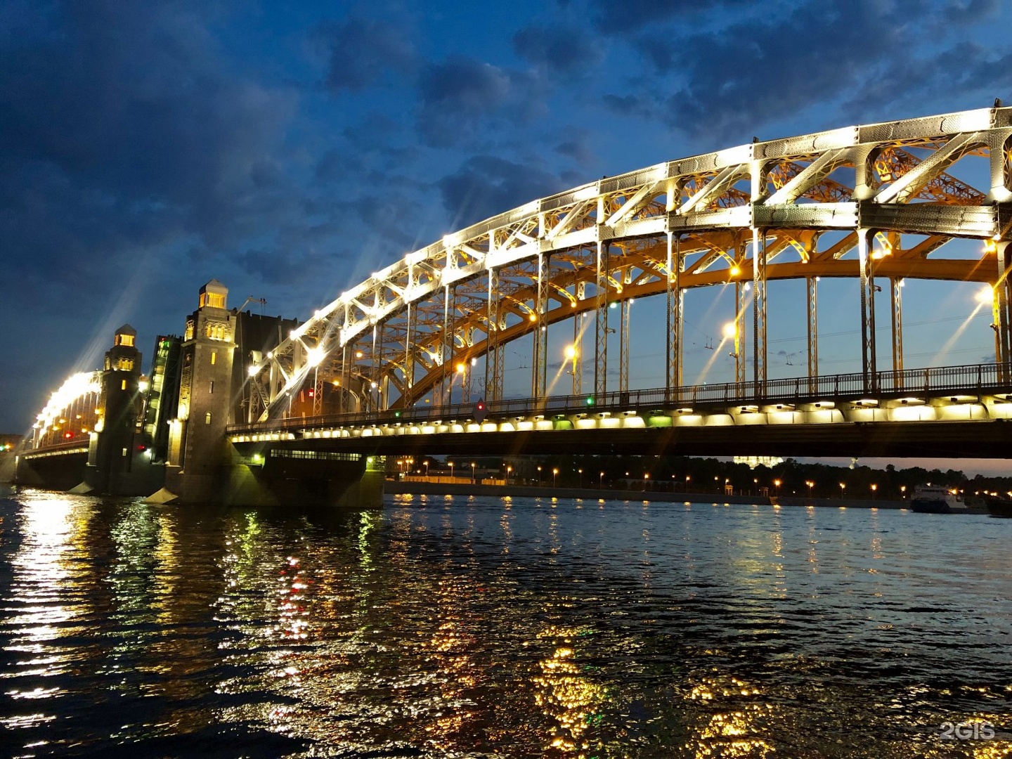 Открытие моста Императора Петра Великого прошло 26 октября 1911 года. С 1917 года мост был переименован в Большеохтинский. 28 ноября 2000 года состоялось открытие художественной подсветки Большеохтинского моста. Длина моста 335 м., ширина 23 м.