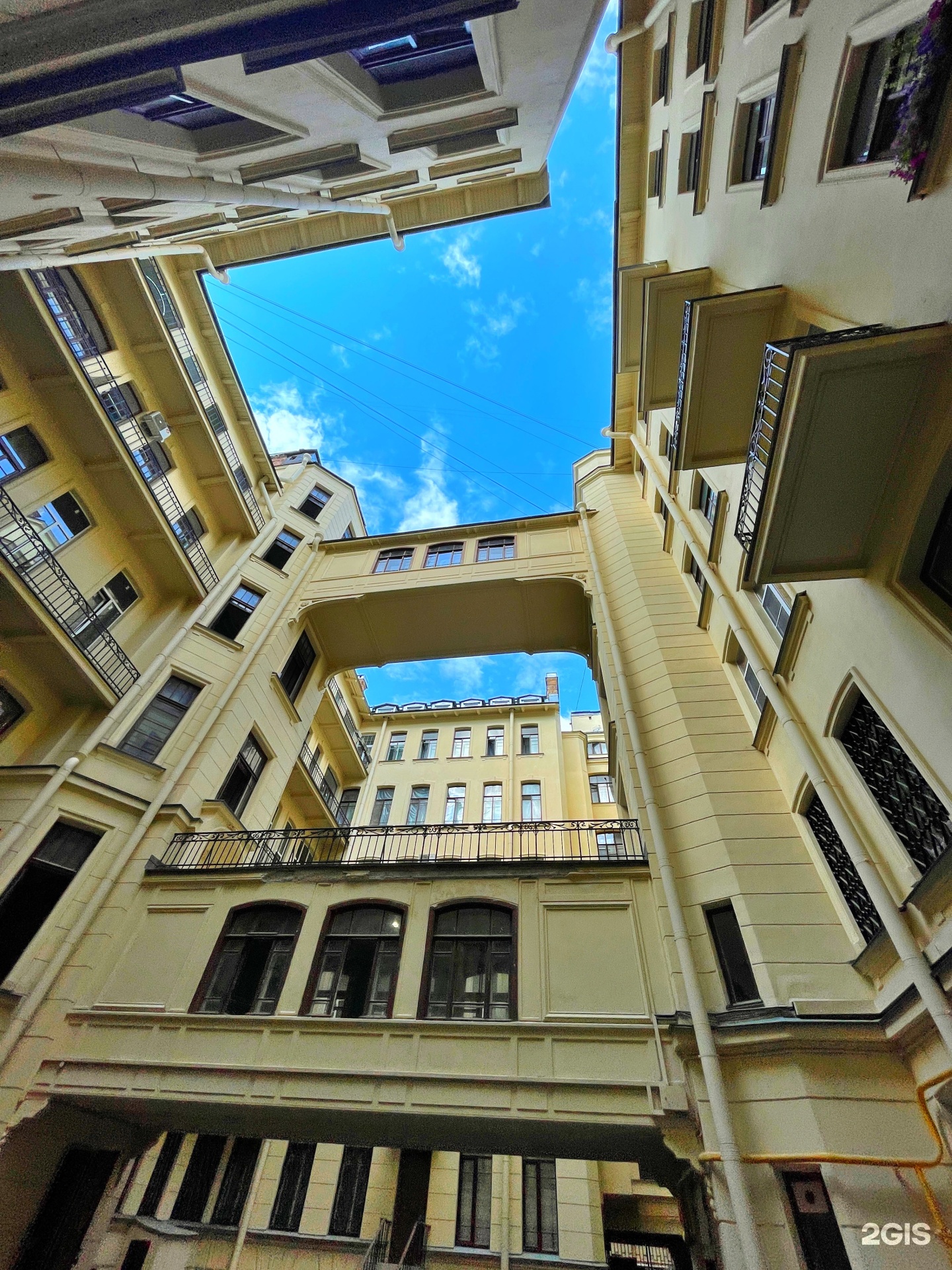 Доходный дом Ю. Б. Бака — это историческое здание, возведённое в 1904–1905 годах по проекту архитектора Бориса Гиршовича для инженера и издателя газеты «Речь» Юлиана Бака. Здание выполнено в стиле модерн с элементами рококо, отличается выразительным декором фасадов и оригинальным архитектурным решением: второй и пятый этажи главного корпуса и флигеля соединены воздушными галереями. Корпус имеет пять этажей и мансарду, а цоколь облицован розовым гранитом.