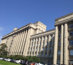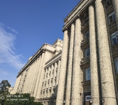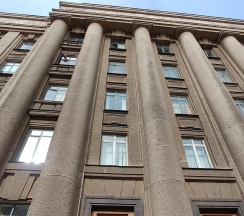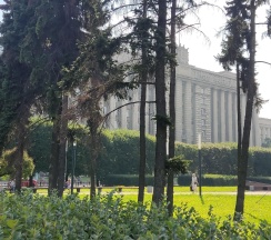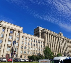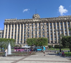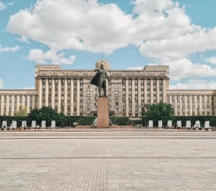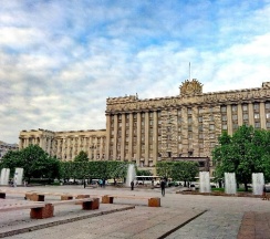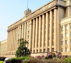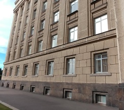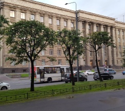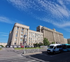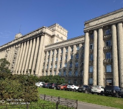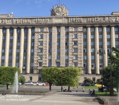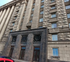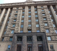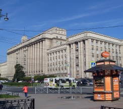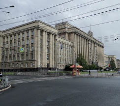 Огромное офисное здание, ранее бывший горисполком московского района г. Ленинграда. Красивое и момументальное здание времён СССР.