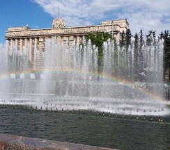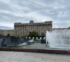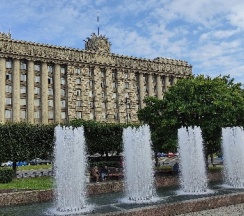 Очент красивое здание на московской площади. На нем все ещё остался отпечаток времени что придает ему свое очарование. Напротив красивейшие фонтаны.