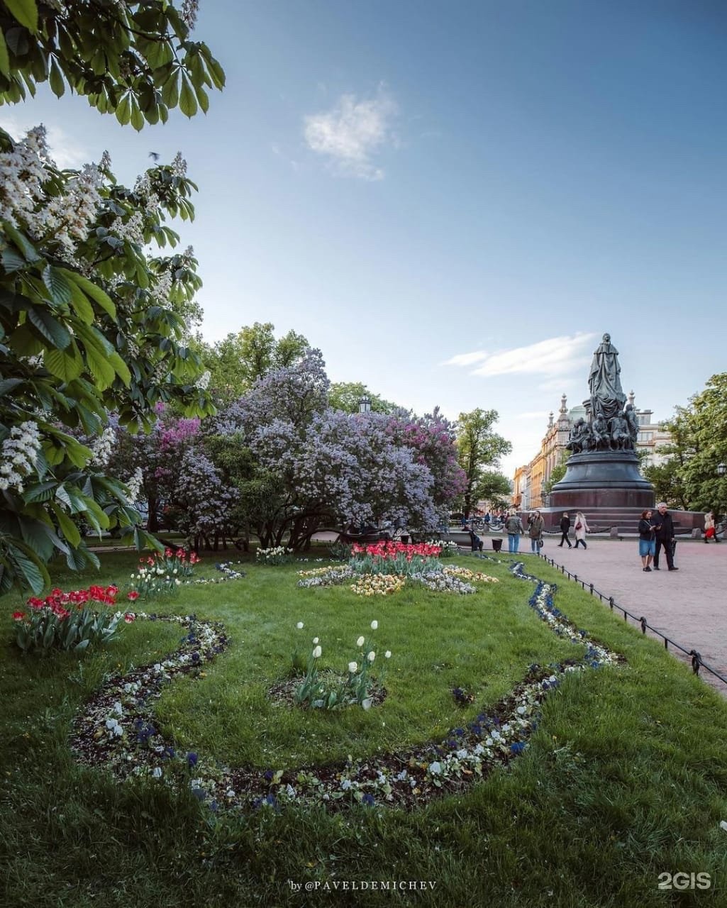 Екатерининский сквер является составной ансамбля Александринского театра. Название было присвоено в 1873 г. после установки грандиозного памятника Екатерине Великой, без которого уже невозможно представить сквер. В советские годы название менялось.