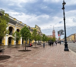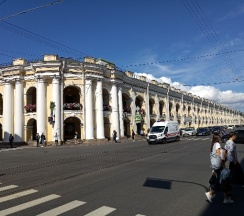 В Санкт-Петербурге Гостиные дворы существовали практически с момента создания столицы и играли существенную роль в обеспечении жизнедеятельности города. Большой Гостиный двор был создан как крупнейшее торговое помещение в Российской империи. По совместительству БГД стал самым ранним сооружением классицизма в городе. Периметр здания около километра. Построен в 1761-1785 гг.