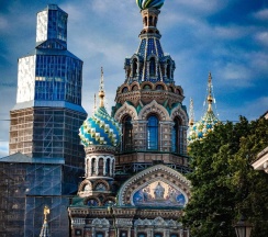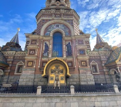 Храм Воскресения Христова построен на месте покушения на императора Александра II, где 1 марта 1881 года он был смертельно ранен, что обусловило второе название храма — Спас на Крови. Этим объясняется и необычное расположение храма — часть фундамента образует выступ в воды канала Грибоедова. Храм-памятник является ярким образцом архитектуры неорусского стиля. Собор отличает богатое мозаичное убранство, украшающее храм снаружи и внутри.