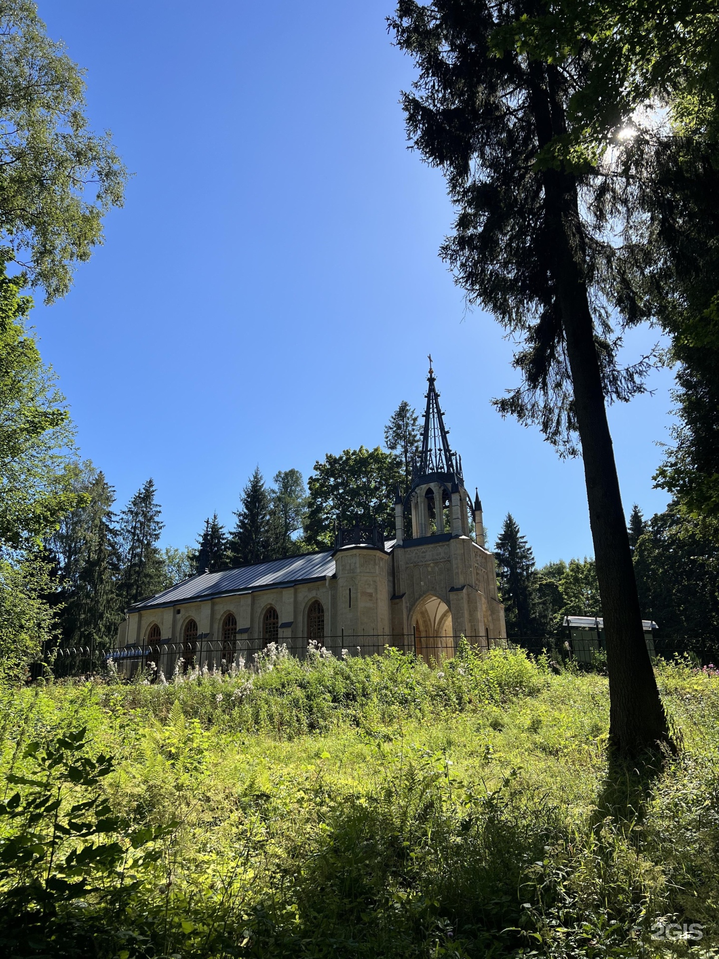 А.П.Брюллов поставил церковь Петра и Павла на возвышенность, чтоб она являлась архитектурной доминантой тихого уголка парголовского парка.