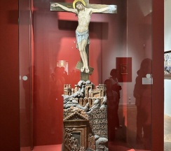 2. Куча работ автора под стеклом-витриной и лежат, они просто теряют весь свой шарм при такой подаче, рассмотреть невозможно. Около этих витрин толкучка.