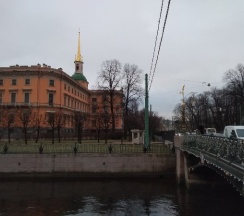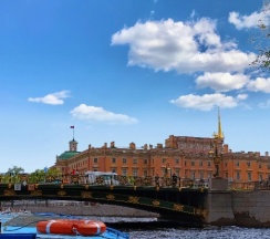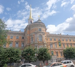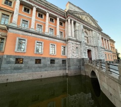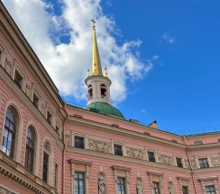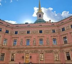 Здание дворца выполнено в стиле средневекового замка. Единственное в России дворцовое сооружение в стиле романтического классицизма. Замок со всех сторон был окружён водой: Фонтанкой, Мойкой и двумя специально вырытыми каналами. Соединялся замок с внешним миром посредством цепного моста, который поднимался на ночь. Сейчас в отреставрированных залах замка действуют постоянные экспозиции – «История замка и его обитателей», «Античные сюжеты в русском искусстве» и др.