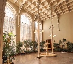 Отдельного внимания заслуживает Зимний сад, расположенный на террасах второго этажа. Украшенные металлом потолки, витиеватые железные конструкции и небольшой фонтан посреди просторного помещения сделали атмосферу поистине волшебной. Атмосферу дополняло невероятное количество зелени и растений, будто перенесших меня в субтропический рай.
