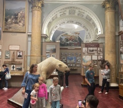 Много всего интересного. Диарамы, карты событий, макеты кораблей, исторические сведения, навигационные приборы, чучела животных, одежда, предметы быта и так далее. Захотелось посмотреть документальные и художественные фильмы, прочесть книги про жизнь и исследования полярников.