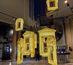 Экспозиция начинается на первом этаже особняка, где пространство превращено в живую инсталляцию, переносящую в начало XIX века — к временам императора Александра I. Но особое внимание здесь уделено двум фигурам, чьи реформы перевернули Россию: Александру II, освободившему крестьян, и Николаю II, на чьих глазах империя подошла к роковому рубежу. Каждый экспонат — будь то личные вещи, документы или редкие фотографии — словно шепчет о надеждах, противоречиях и трагедиях того времени. Особенно впечатляют рассказы о деятелях революционного и либерального движения — о тех, кто мечтал изменить Россию, каждый по-своему.