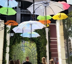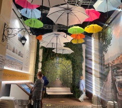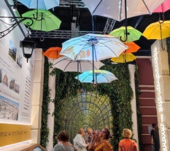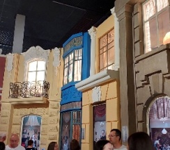Применение театральных декораций позволяет совершить путешествие во времени, угадать лица современных петербуржцев в образах манекенов, переодетых в костюмы разных эпох и стилей.
