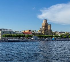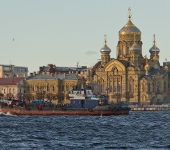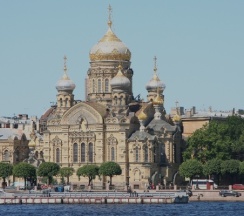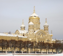 Новаторство архитектора выразилось в применении пересекающихся арок для поддержки главного барабана, что дало возможность не устанавливать пилоны и создать обширное внутреннее пространство. Величественный пятиглавый храм, богато украшенный настенными росписями, стал играть важную роль в панораме набережной и устья Невы.