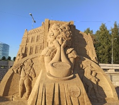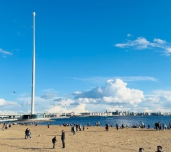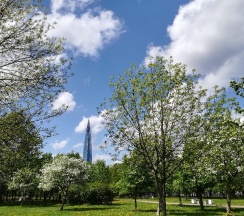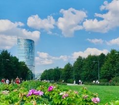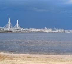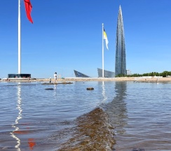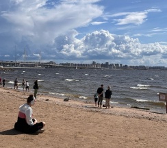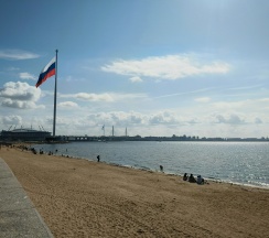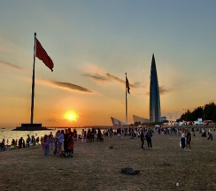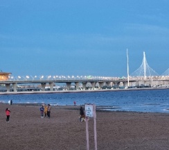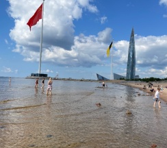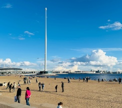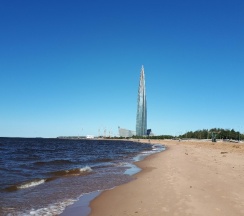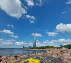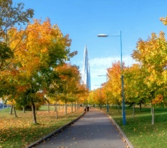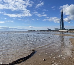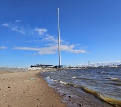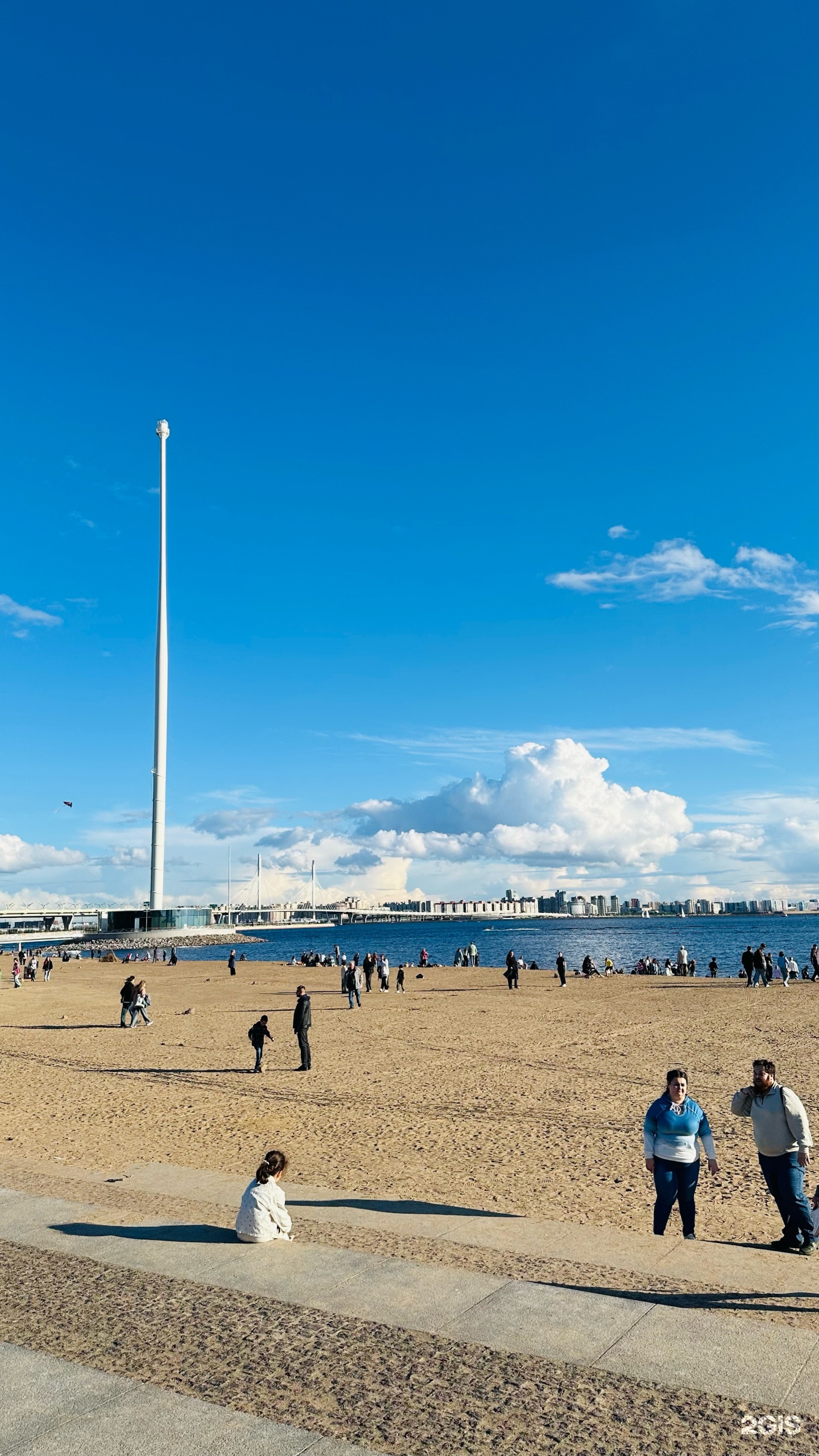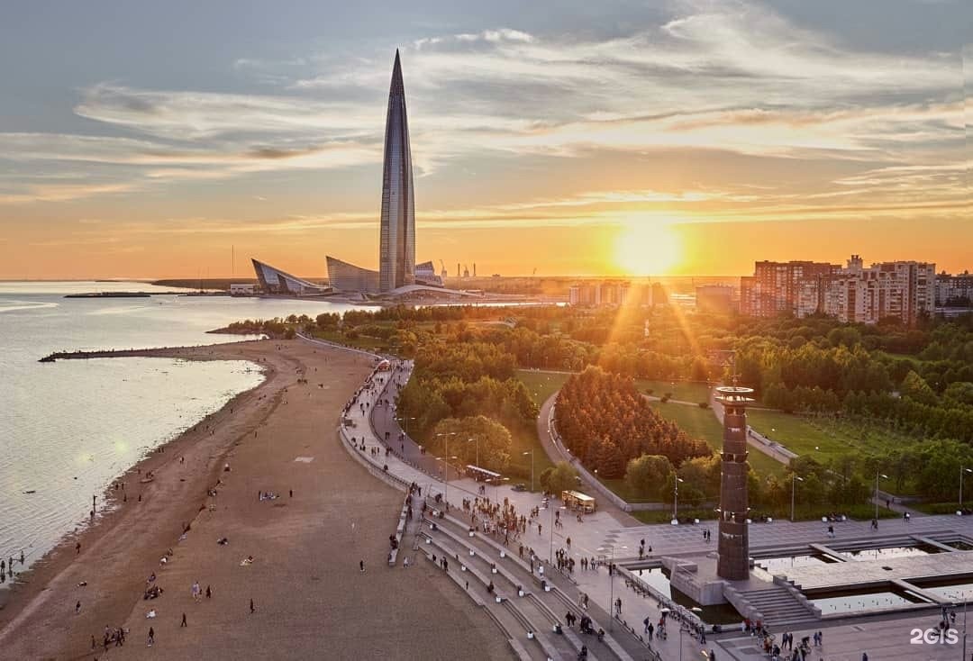 Круто что можно оказаться на берегу Финского залива на такой приятной территории парка. С этого места открываются красивые виды на залив и прибрежные строения. Рядом «Лахта» центр, по вечерам красиво подсвечивается разными огнями. Каменистый и песчаный берег, хвойные деревья, фонтаны, лавочки, скейт парк и наверно ещё что то, что я мог упустить потому что парк очень большой.