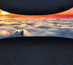 Зал «Планетка». С помощью круговой панорамы для посетителей открываются уникальные ландшафты всех континентов, можно увидеть ураганы, смерчи, покорить неприступные вершины мира, узнать о многоликой природе гор и планет.