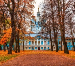 Общее время строительства собора составило 87 лет – это самый большой срок строительства в Петербурге. Смольный собор выполнен в стиле пышного барокко.