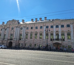 Строгановский дворец является одним из образцов русского барокко. Из интерьеров дворца, спроектированных Ф.-Б. Растрелли, до наших дней сохранились Большой зал и Парадный вестибюль. В первой половине 20 века проводилась реставрация некоторых интерьеров дворца, а так же был перекрашен фасад здания. До 2003 года он оставался бело-зелёным. Сейчас задание покрашено в розовый и белый цвета.