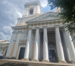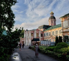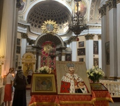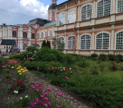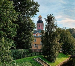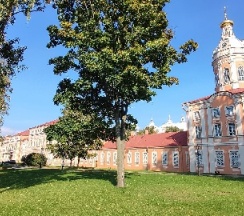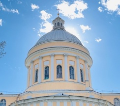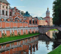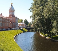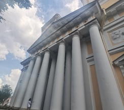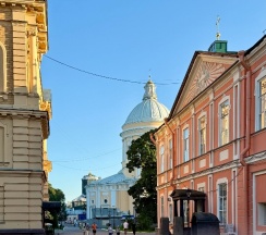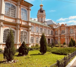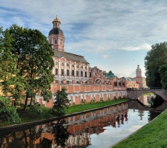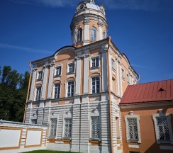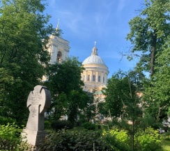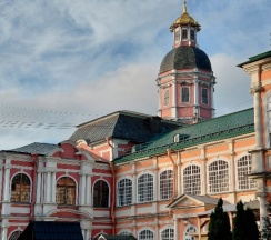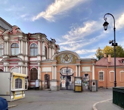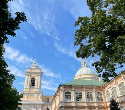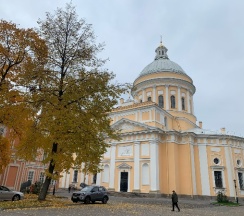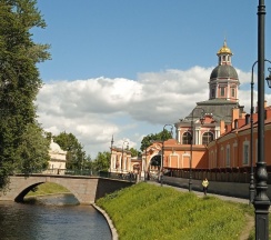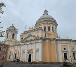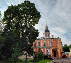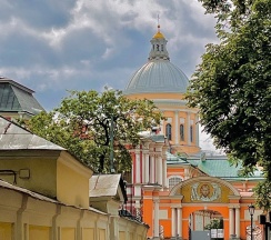 Место для будущего монастыря было выбрано Петром I весной 1704 г. - в то время считалось, что именно на этом месте Александр, новгородский князь, разбил шведов, за что впоследствии получил имя «Невский». Первая деревянная церковь появилась здесь в 1712 году; закладка собора состоялась в 1722 году, однако достроен он был гораздо позже. Свято-Троицкий собор решён в стиле классицизма, здание оформлено монументальным шестиколонным портиком под треугольным фронтоном и увенчано мощным куполом. В 1933 году собор был закрыт и передан Дому чудес и технических достижений Ленинграда; возвращён РПЦ в 1956 году.
