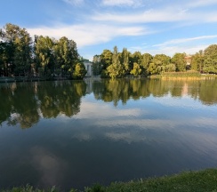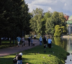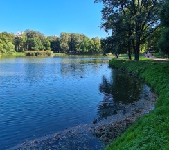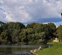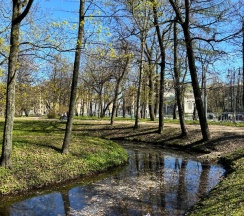 Передо мной предстала небольшая река Саморойка,некогда представлявшая собой сложную систему водоемов и протоков. Сейчас, правда, осталась лишь пара небольших прудов, сохранивших своё очарование. Вода, прибывавшая раньше из Лиговского канала, теперь тихо плескалась среди старых деревьев и кустарников.