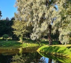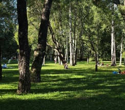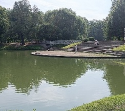 Один из островов, расположенных на самом крупном озере, служил прекрасным убежищем для птиц и отдыхающим. Деревья, посаженные там много лет назад, превратились в высокие красавцы, дающие прохладу даже в самые теплые дни. Виднеющиеся вдали мостики соединяли остров с берегом, приглашая пройти по ним и полюбоваться видом с высоты птичьего полета.