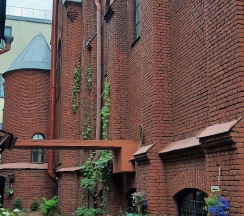 Храм был построен в начале 20 века в строгом и величественном стиле северный модерн с элементами романского стиля.
