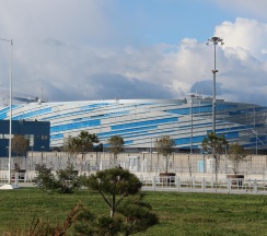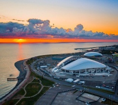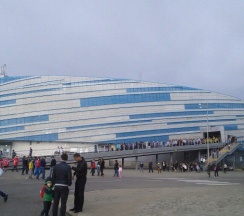 Ледовая арена «Шайба» была построена в августе 2012 г. для проведения зимних Олимпийских игр. Ледовая арена является вторым по величине и значимости стадионом после «Большого ледового дворца». «Шайба» имеет форму одноименного хоккейного атрибута, а также создает видимость снежного вихря. Объект проектировали так, чтобы можно было переместить в любой другой город России, но спустя некоторое время выяснилось, что особенности конструкции фундамента не позволяют этого сделать. В апреле 2013 г. здесь проводился чемпионат мира по хоккею среди юниорских команд. Во время зимней олимпиады на арене проходили соревнования по хоккею. А в марте 2014 г. в «Шайбе» прошли соревнования по следж-хоккею, приуроченные к Параолимпийским играм. После олимпиады ледовую арену переименовали во «Всероссийский спортивно-оздоровительный центр для детей». Церемония торжественного открытия этого учреждения была проведена 4 июля 2014 г.