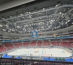 Архитектура здания выделяется куполообразной крышей размером 140 × 190 метров. Её форма напоминает замёрзшую каплю росы или жемчужную раковину. Вместимость дворца составляет около 12 000 зрителей, общая площадь — почти 100 000 м². В апреле 2013 года здесь прошёл чемпионат мира по хоккею среди юниоров.