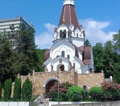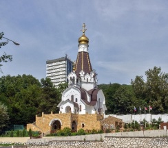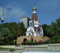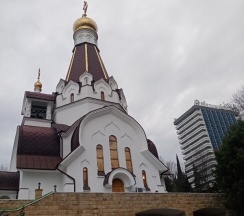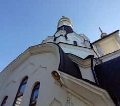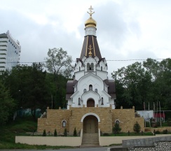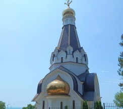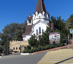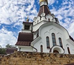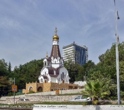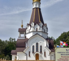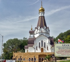 Храм св. Феодора Ушакова построен в честь адмирала Феодора Ушакова, который не потерпел ни одного поражения, ни один его матрос не попал в плен. В архитектуре храма видны морские мотивы – мягкие килевидные очертания закомар и интерьера, а венчают храм кресты, выполненные в виде якорей. В нижнем этаже расположены зал собраний – трапезная, кабинеты, подсобные помещения. Храм в неорусском стиле. Развитый цокольный этаж врезан в склон.