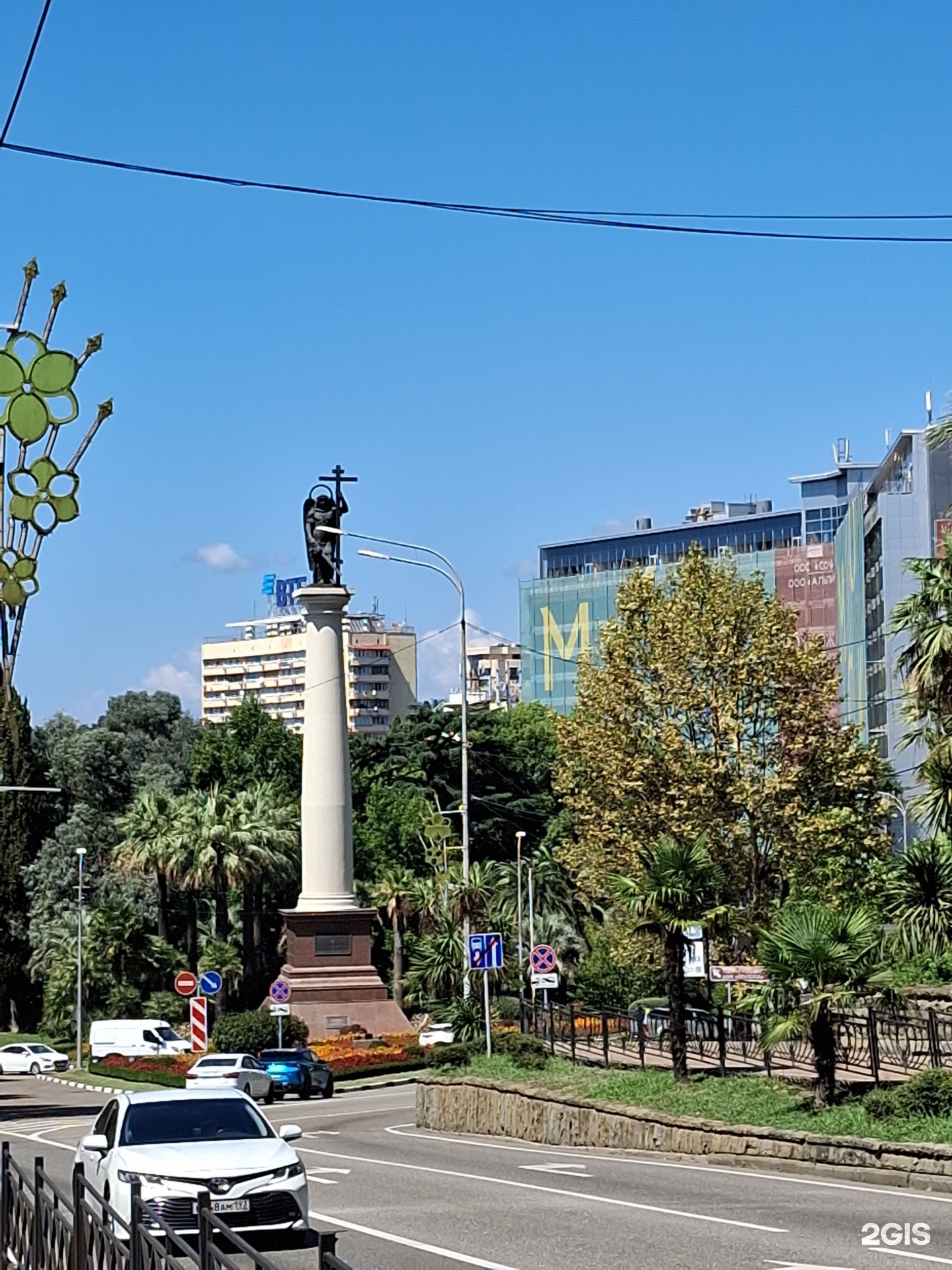 Монументальная колонна со скульптурой Архангела Михаила, главы Небесного воинства, покровителя города Сочи. Монумент установлен на месте захоронения русских солдат, погибших при защите форта Александрия — цитадели современного города Сочи.