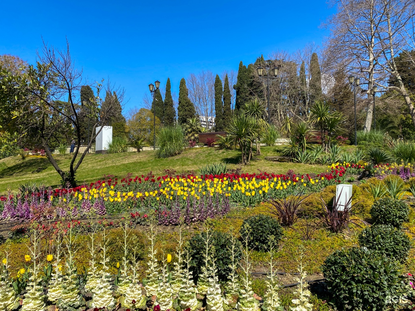 Приморский парк был основан в 30-х г. 20 века на месте старого бульвара конца 19 века. Первоначально эта территория была покрыта диким лесом, который затем был расчищен. В наши дни Приморский парк тянется узкой полосой по высокому берегу Черного моря. С одной стороны он ограничен храмом Михаила Архангела и концертным залом «Фестивальный», а с другой — Зимним театром.