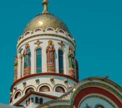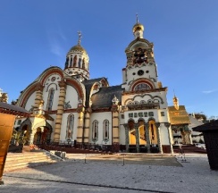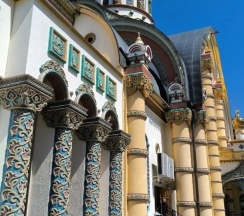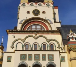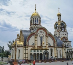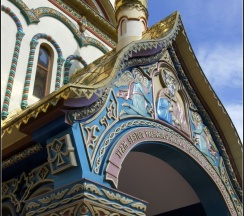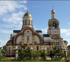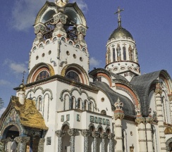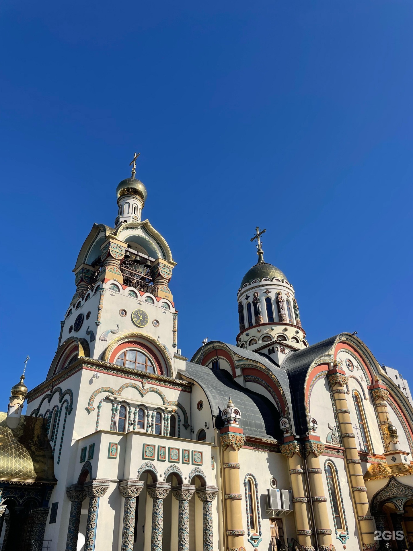 Храм выполнен в стиле, напоминающем храм Василия Блаженного в Москве, с обилием декоративных элементов и ярких цветов, но с более простой композицией. Здание храма бесстолпное, одноглавое, с небольшой колокольней и трехчастной апсидой. Основной материал строительства — бетон высокой прочности. Храм стал первым в России и Европе монолитным храмом. Внутреннее убранство включает резьбу и роспись икон, выполненные палехскими мастерами, а иконостас обильно покрыт сусальным золотом.