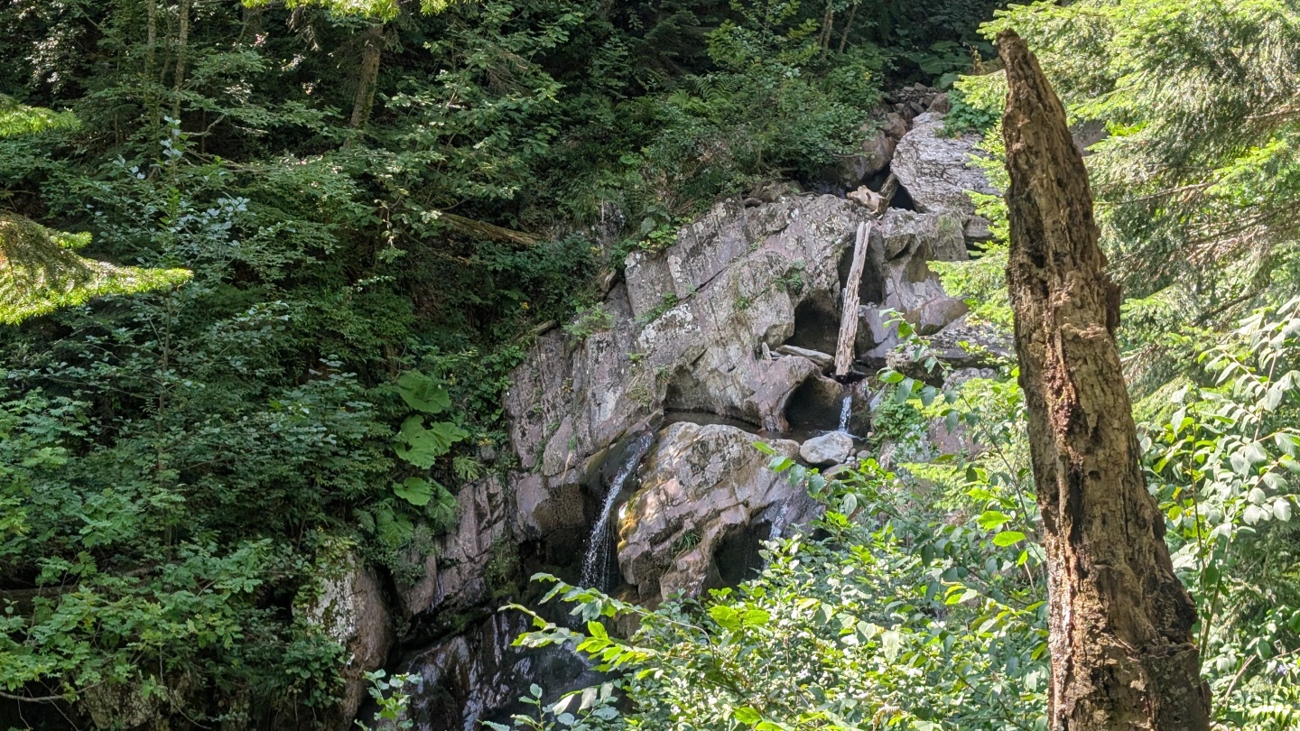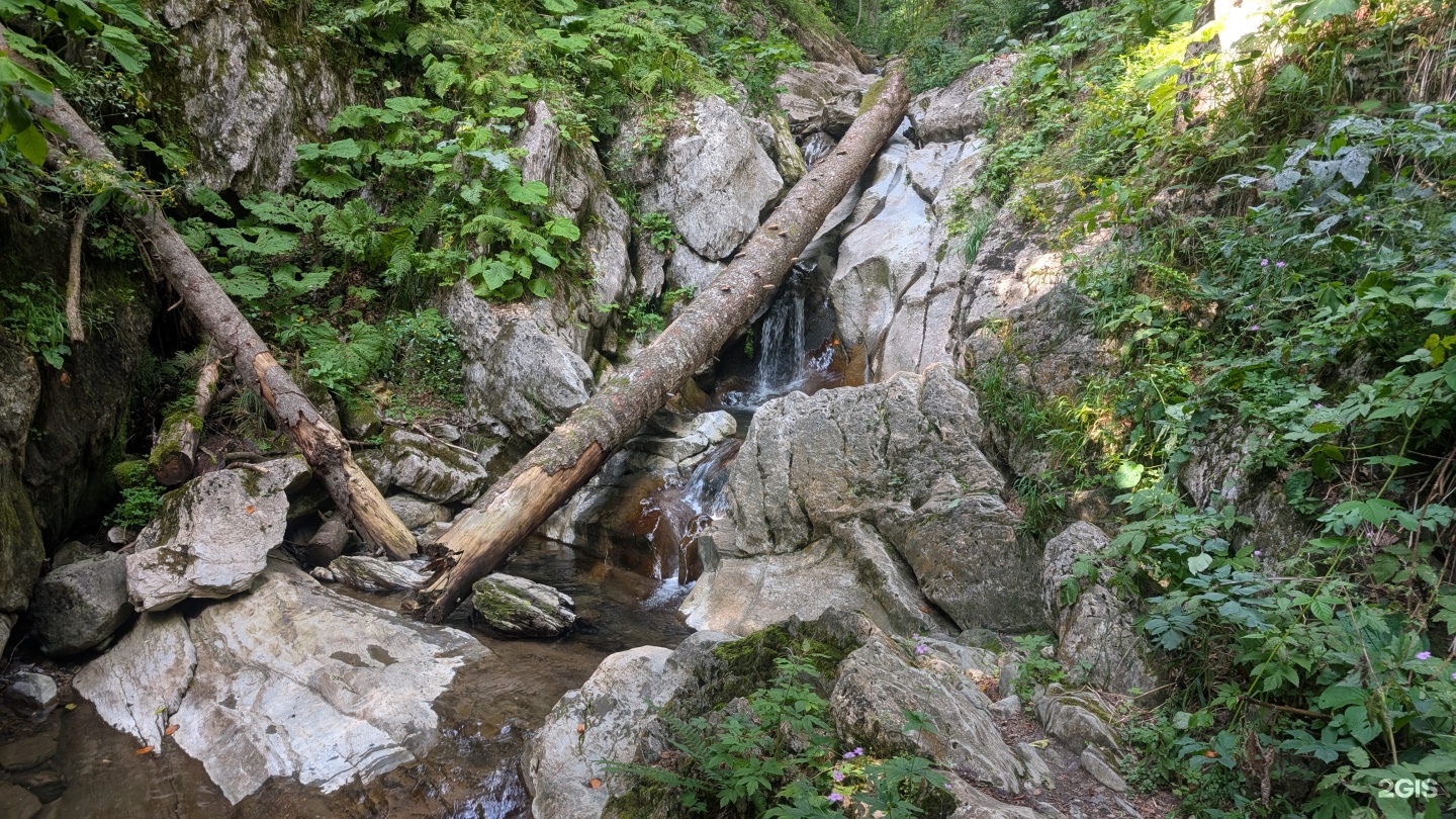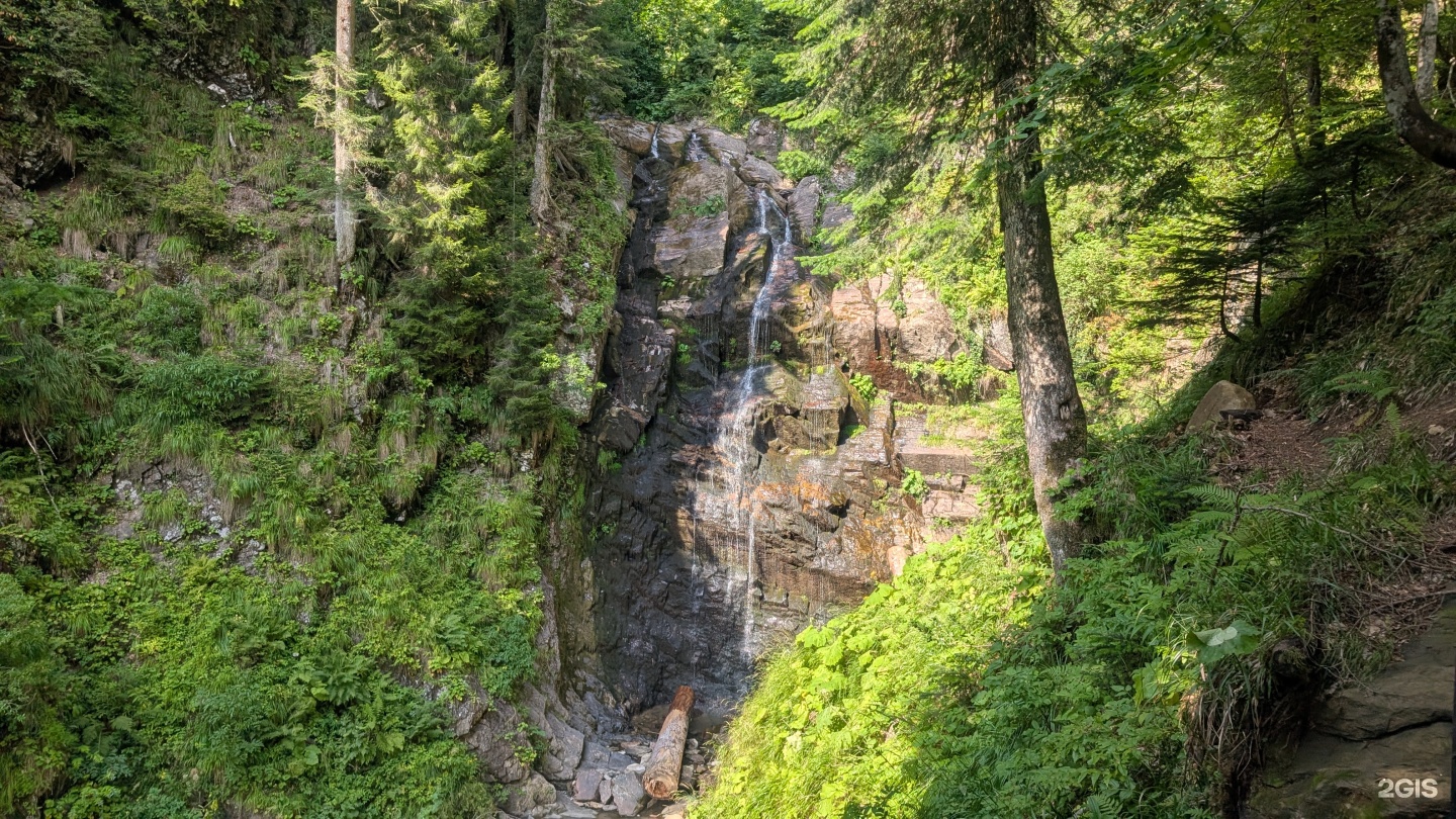 Водопад Червонный находится в горном массиве Псехако. Его высота составляет около 20 метров, и он образован на одном из притоков реки Мзымта. Водопад особенно эффектен в период таяния снегов и после сильных дождей, когда поток становится полноводным и мощным.